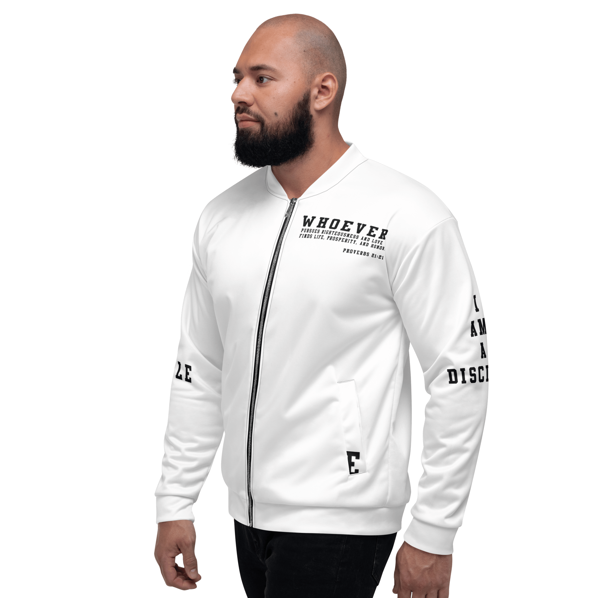 Unisex Bomber Jacket - Black and white disciple